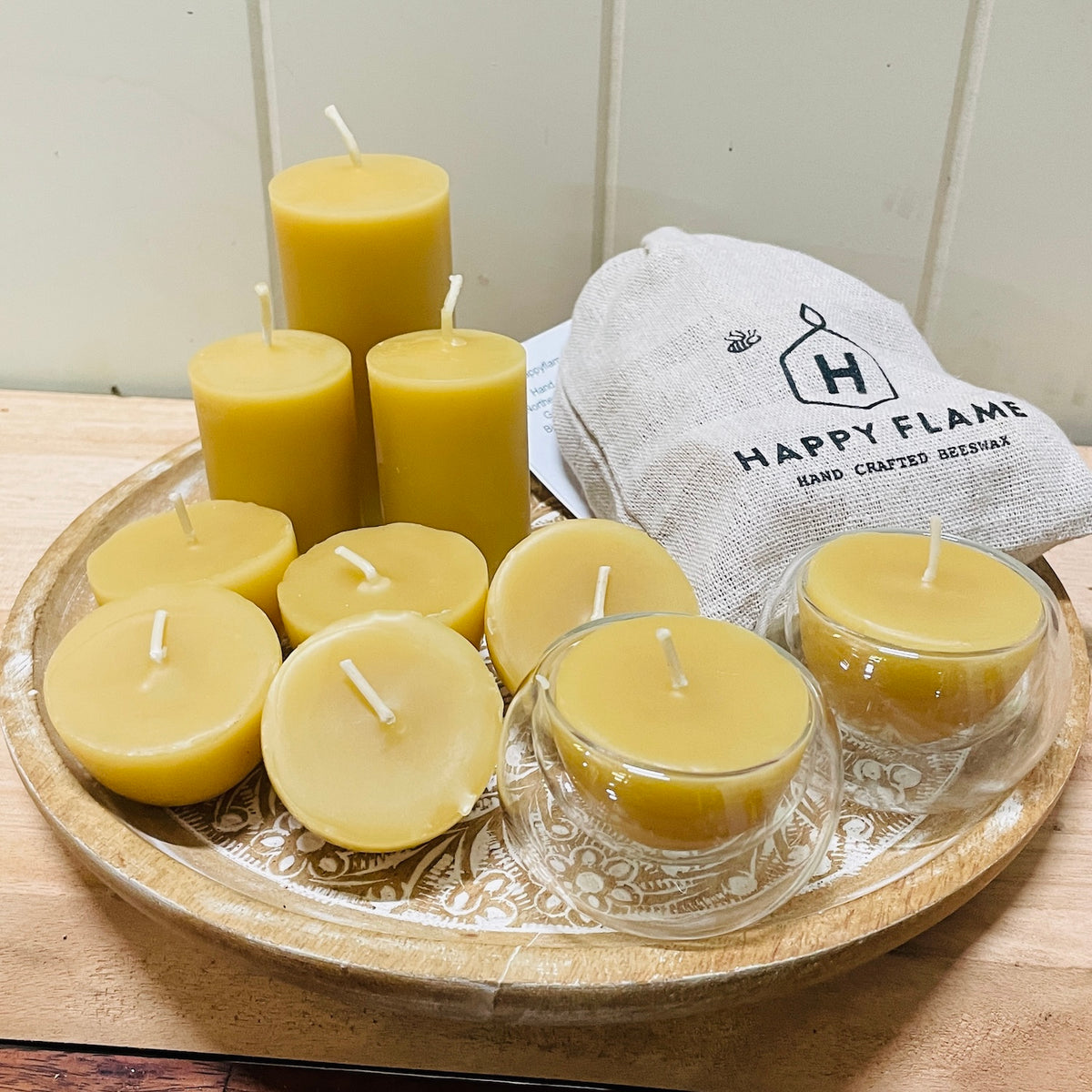 Australian certified organic beeswax, pure, 100% pesticide and chemical free, certification by an outside organisation (Southern Cross) to ensure the very best organic standards and candles:
