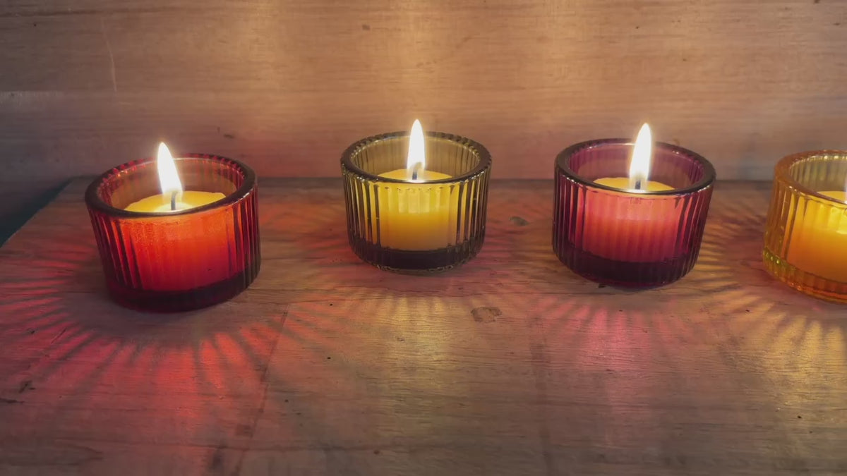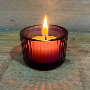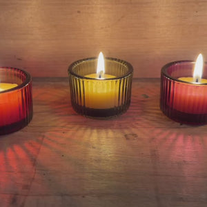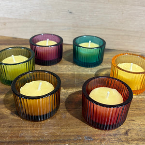 Our clear glass ribbed candle holders are very popular, but now its time for some colour!